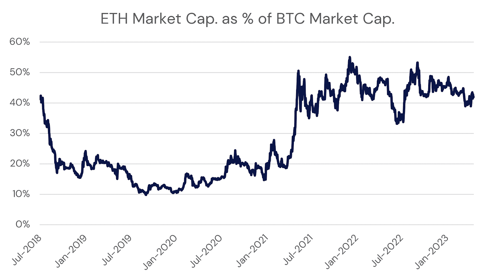 In the analysis above, Ethereum comes out as a leader in many respects, but the latest rates of change favor Bitcoin. The five-year token price performance of ETH and BTC has been almost identical, while the latter carries a market cap twice as large. Having said that, the gap between the two has shrunk substantially in recent years.