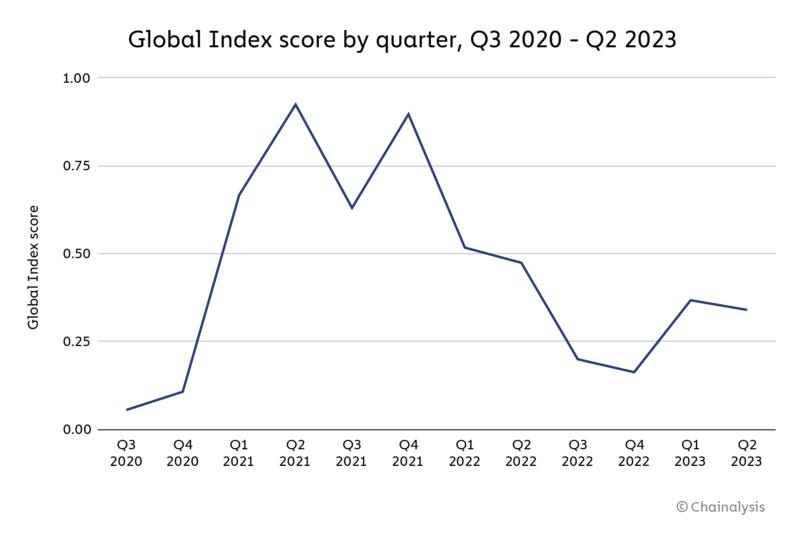 Looking at the latest Global Crypto Adoption Index report from Chainalysis, we can see the routine playing out in digital asset makers again.