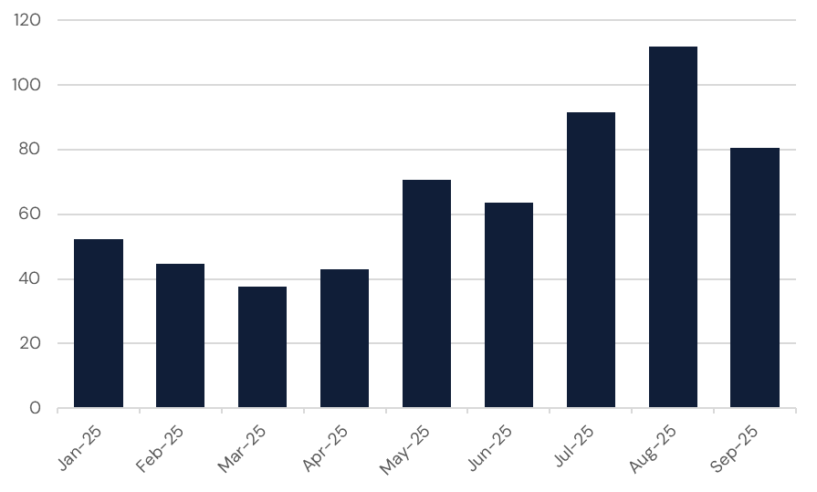 Monthly Fees Generated on HyperEVM (in thousands, USD)