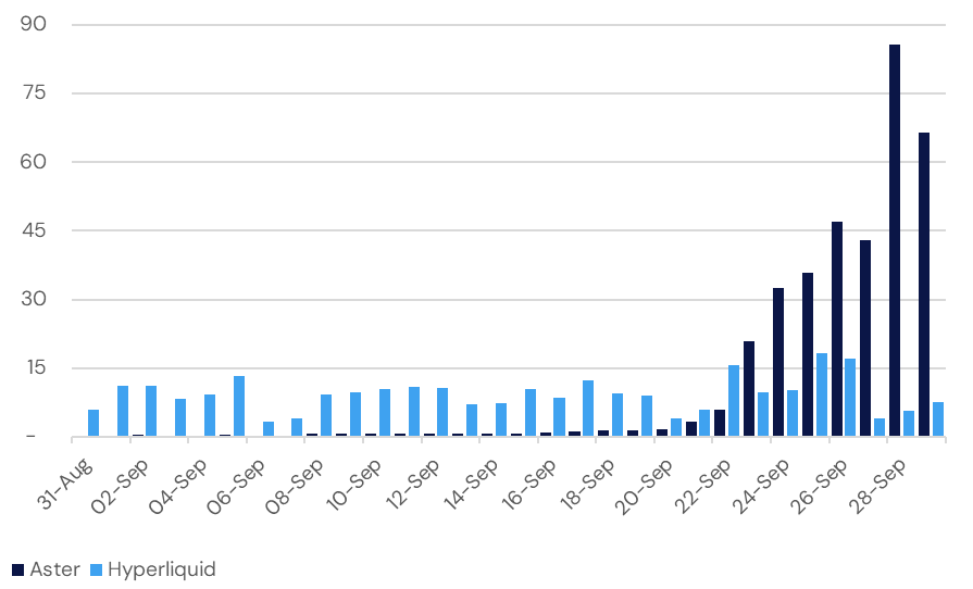 Aster, built on BNB Chain, has generated significant buzz through its own airdrop strategy and claims of supporting up to 1001x leverage. Its rapid fee generation and institutional wallet accumulation show that the Hyperliquid playbook is being studied and adapted by others.