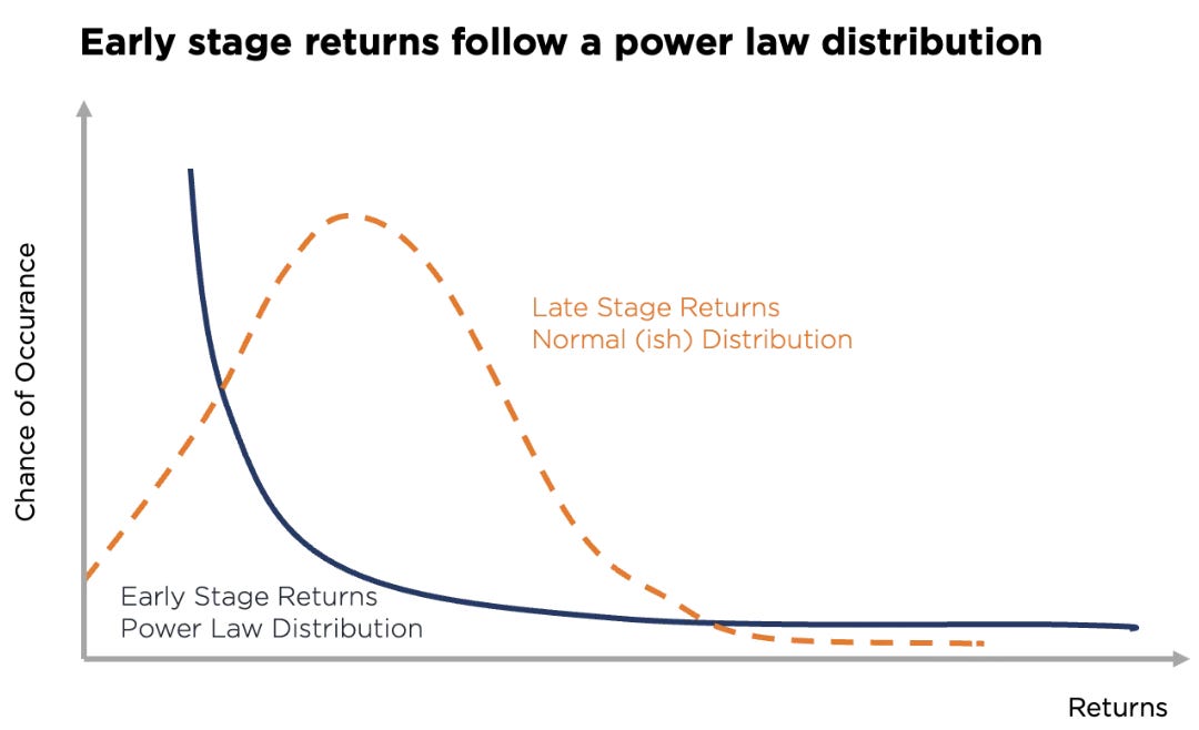 A: In crypto VC, a handful of projects will generate outsized returns, while many others will fail or deliver mediocre results. This dynamic is amplified by the fast pace of innovation, public market dynamics, and network effects in the crypto space.